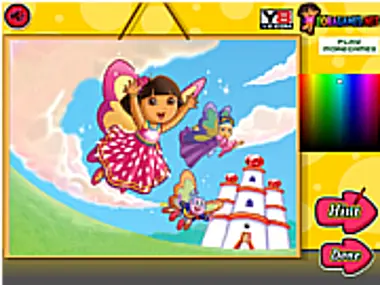 Color up Dora and her best friend's Boots as the prepare to go the crystal kingdom.