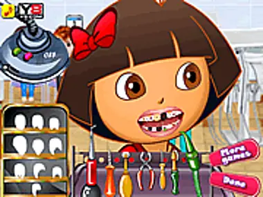 Dora ha molti problemi ai denti. Ha mangiato barrette di zucchero, caramelle e 10 cioccolatini in un solo giorno e ora ha tutti i denti rotti. Tu sei un dentista, quindi devi riparare tutti i suoi denti o impiantarne di nuovi.