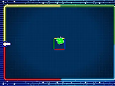 Catch the bubbles with the correct side of the square (same color) by rotating or moving it.