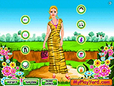 Choose a perfect dress in harmony with the beautiful green valley landscape on the background.