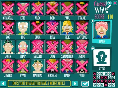 It's time to Guess Who? in this fun puzzle game. Ask questions to determine your opponent's character. Be the first to guess right and you'll win!