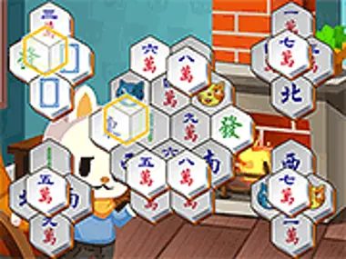 Divertente gioco di mahjong con gatti e tessere esagonali. Combina due tessere libere uguali. Le tessere libere sono evidenziate quando non sono coperte e hanno almeno tre lati contigui liberi.