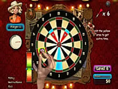 Tieni d'occhio il premio in questa entusiasmante versione delle freccette. Lo show TV Darts ti fa schierare sull'oche e lanciare le tue freccette in punti specifici del bersaglio. Ma le cose non sono così facili come sembrano: bersagli in movimento, zone di pericolo e limiti di tempo sono contro di te mentre lotti per il premio.