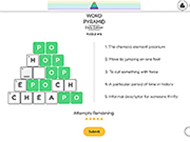 Sì, Word Pyramid: Daily Edition può essere giocato su dispositivi mobili ma anche su computer desktop. Funziona direttamente nel browser e non è necessario scaricarlo.